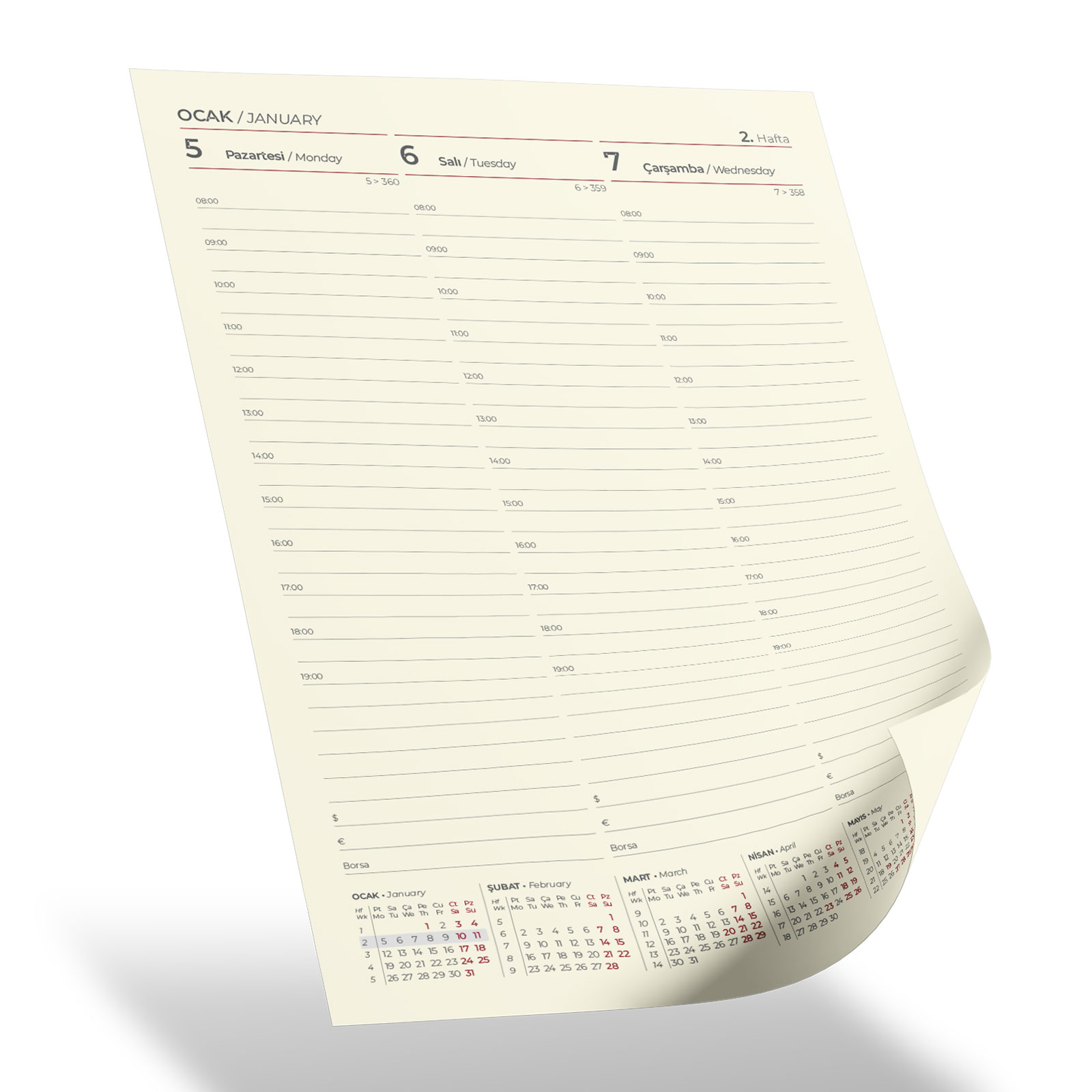 311204 SUBAYEVLERİ KIRMIZI SPİRALLİ TARİHLİ HAFTALIK AJANDA (20×28 CM)